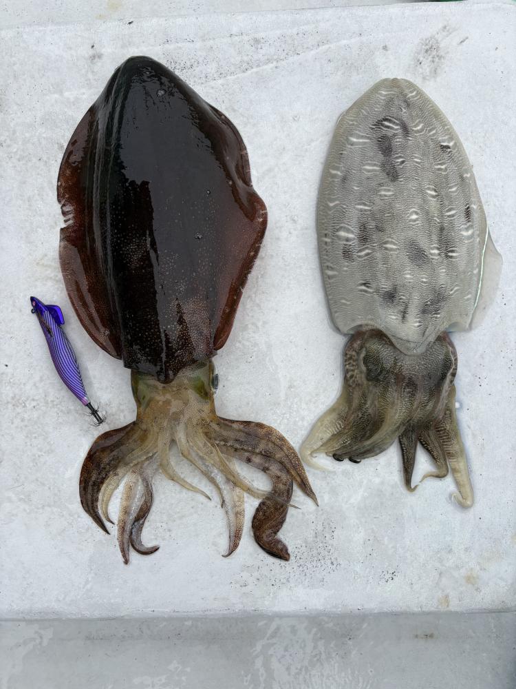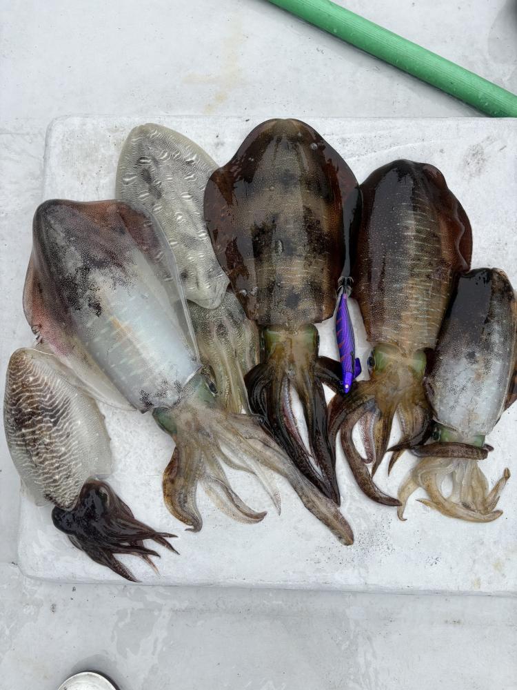 昨日は激シブでしたが昨日と潮の色が違い海が変わってる感じはしました、結果良い方に変わったみたいでアタリ多くバラシもあったりしましたがアオリ大きいので1.2キロ1杯と800グラムが2杯小さいやつで600グラムでした!